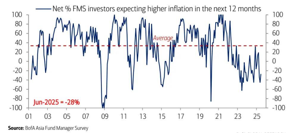 图表 2:通胀预期仍接近历史低点,净 28% 的参与者预计未来 12 个月亚太地区(不含日本)的通胀将回落